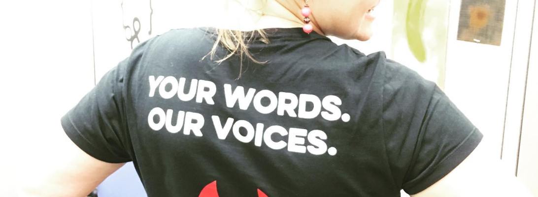 Our mission is to elevate the voices of our community by performing their work onstage. We want to incentivize writers and artists to take artistic risks, which is why we want to pay honorariums to writers, performers, and photographers. By buying a Play On Words t-shirt, you are not only helping us pay artists and recognize their contributions to the community, but you’re effectively joining the #powsj movement.