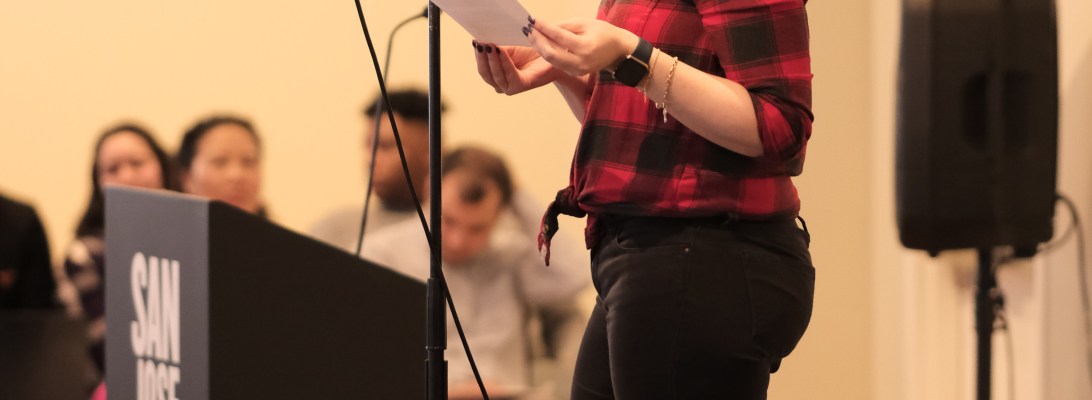 Why is it most high school capers tend to take place in restaurants? The characters in Arcadia Conrad‘s “Stem the Tide” hatch an elaborate plan to scurry away to senior prom, despite disapproving parents, while arguing over tartar sauce. We’re delighted to work with the fabulous Arcadia again at our January 12 Beyond Boundaries show at the San Jose Museum of Art.