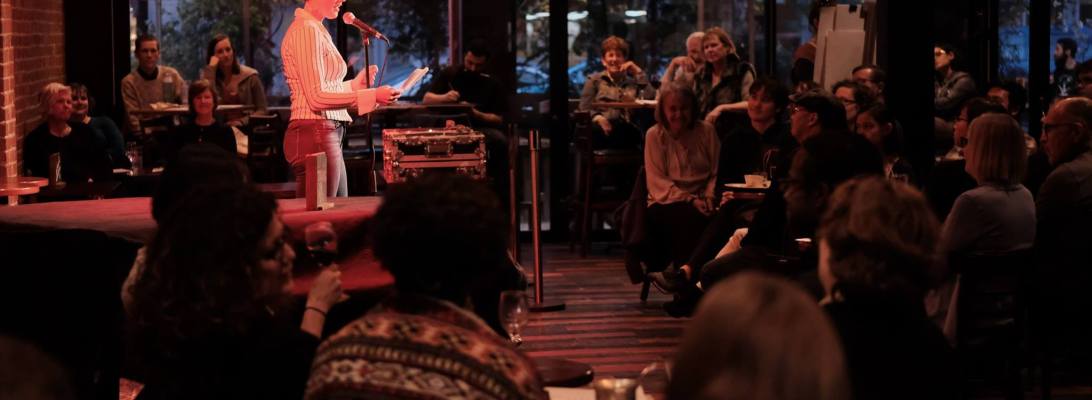 What is going through a mother’s head when she is in labor? We loved Valerie Castro Singer‘s poignant, funny and lovely poem “Birthday,” performed wonderfully by Laurel Brittan at Cafe Stritch on April 11: